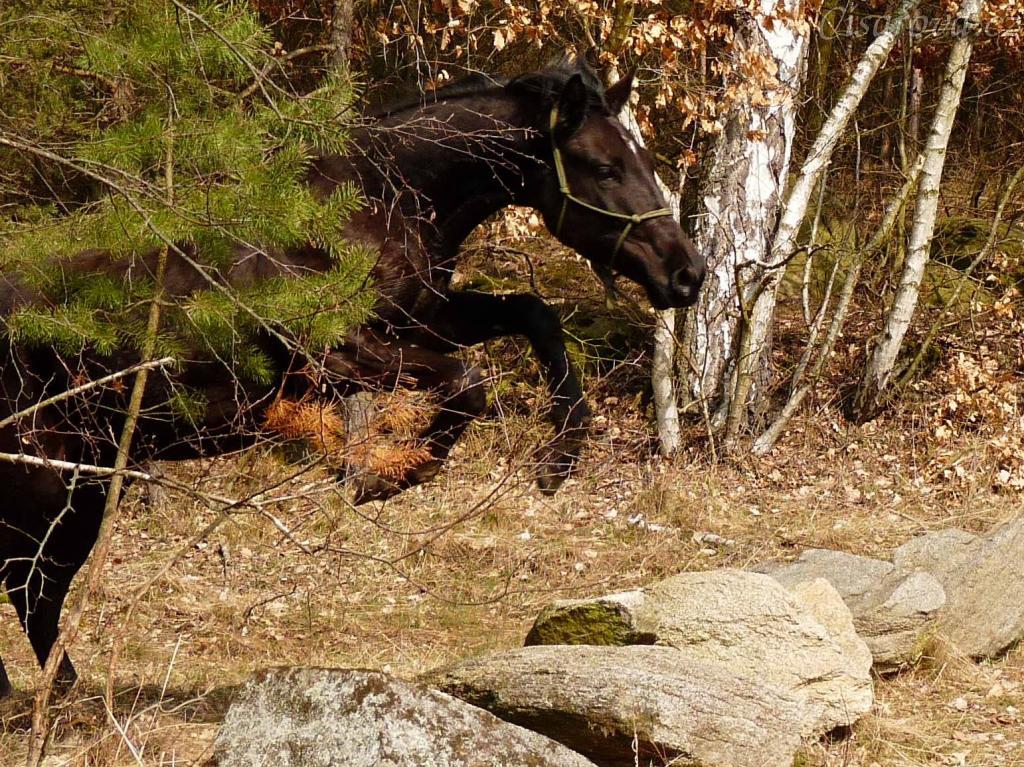 Carthago skáče přes kameny, které jsme potkali na vyjížďce
