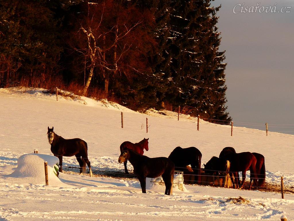 Koně u sena