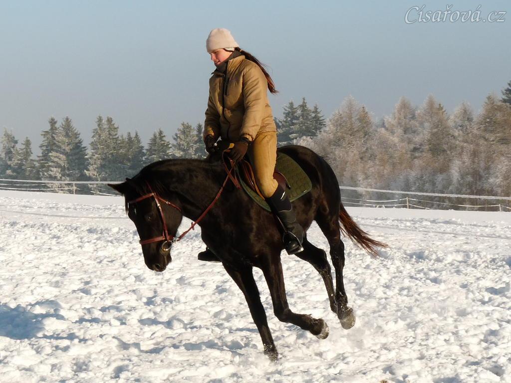 Únor 2011, práce na jízdárně, cval na kruhu