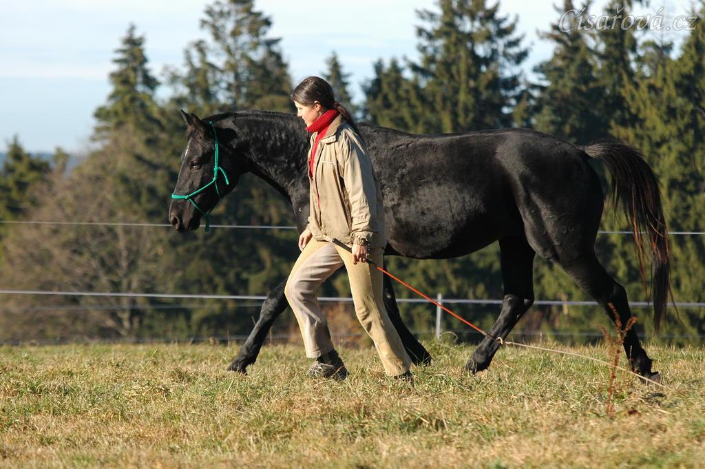 Říjen 2010, práce ve volnosti, klus vedle mě. Foto Olga Procházková