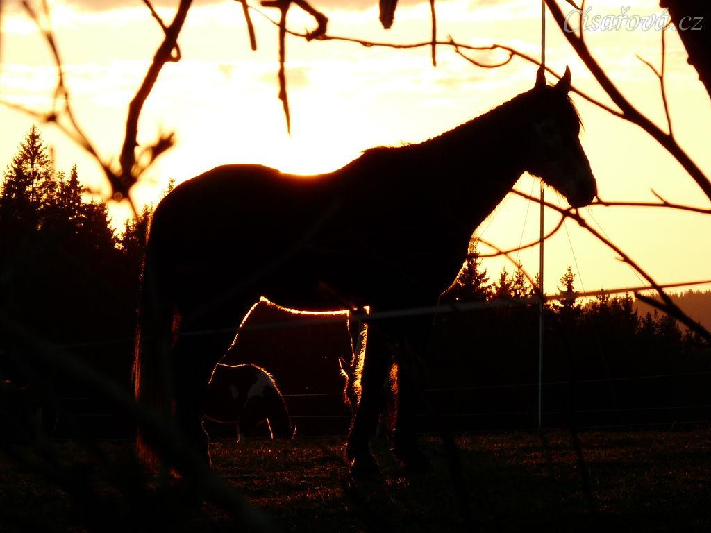 2.4.2011 - První vypuštění koní na pastvu, západ slunce