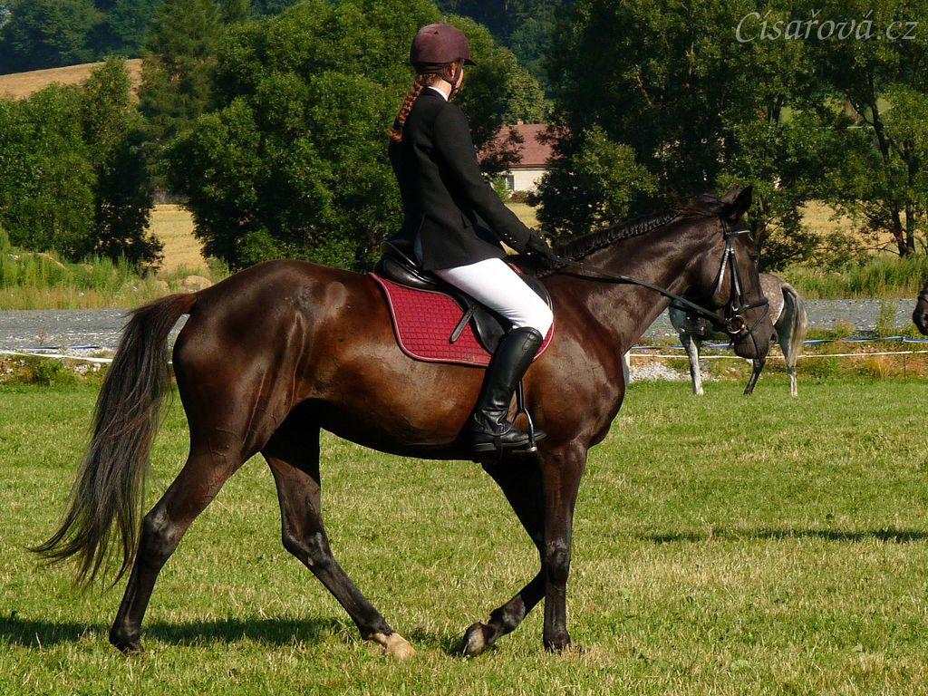 Arwen při opracování před drezurou při závodech všestrannosti stupně ZK, Humpolec 16.7.2011