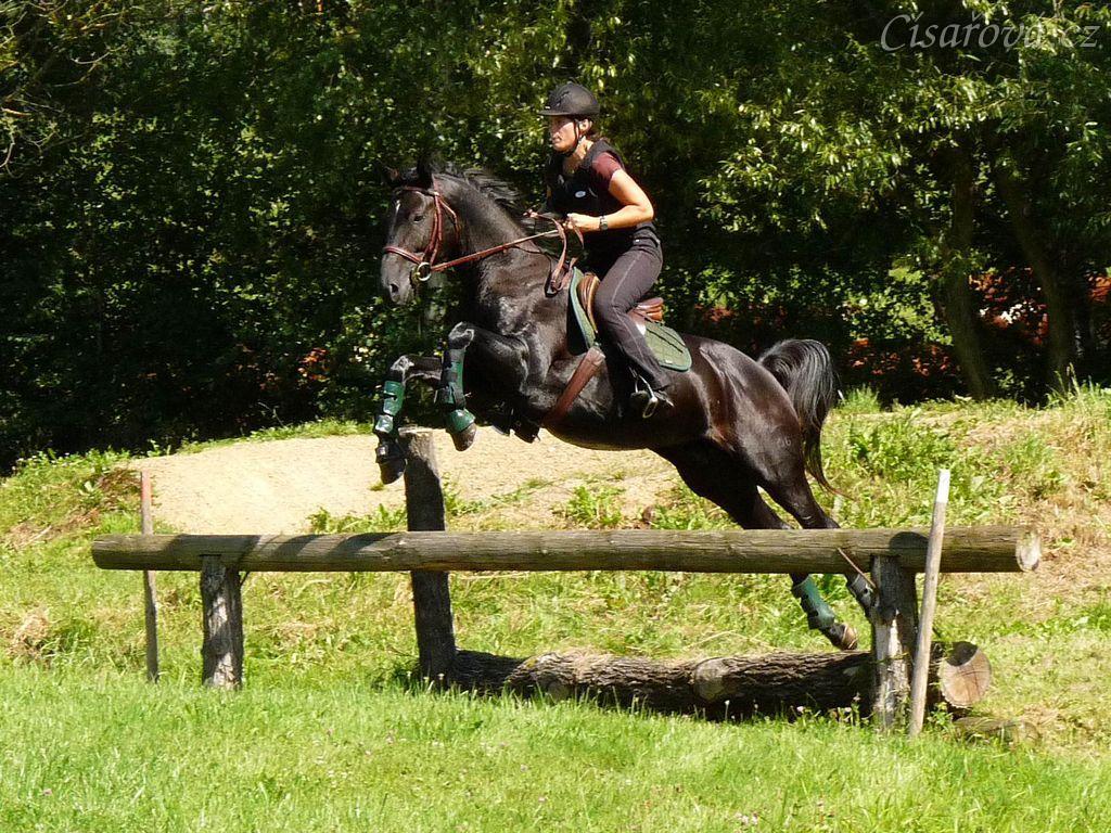 Carthago přeskakuje skok nad potokem, aneb trakén nad trakénem:-) , Crossový trénink v Borové 29.8.