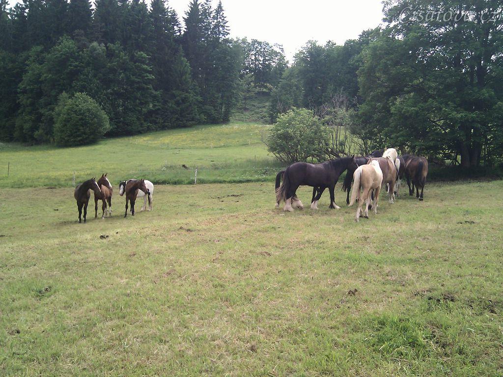 Stádo hřebců dovádí při příchodu nového člena stáda