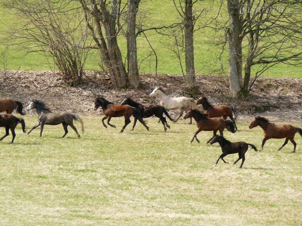 Stádo klisen poprvé letos na trávě, museli se také pořádně proběhnout:-)