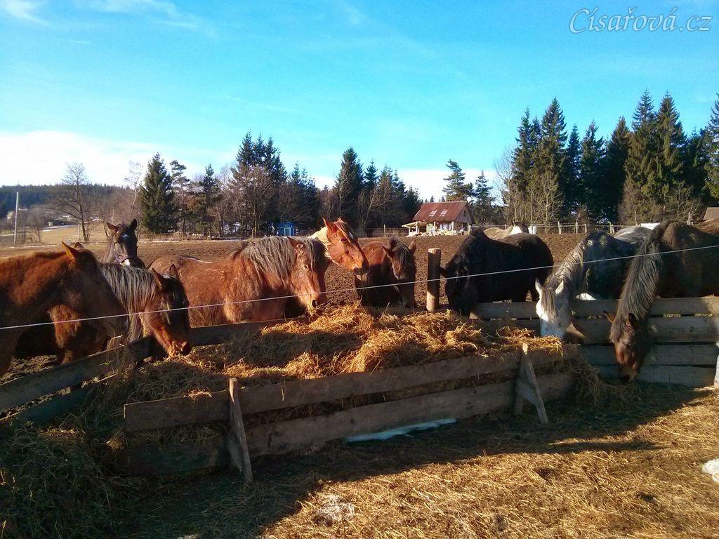 Stádo klisen u senáže