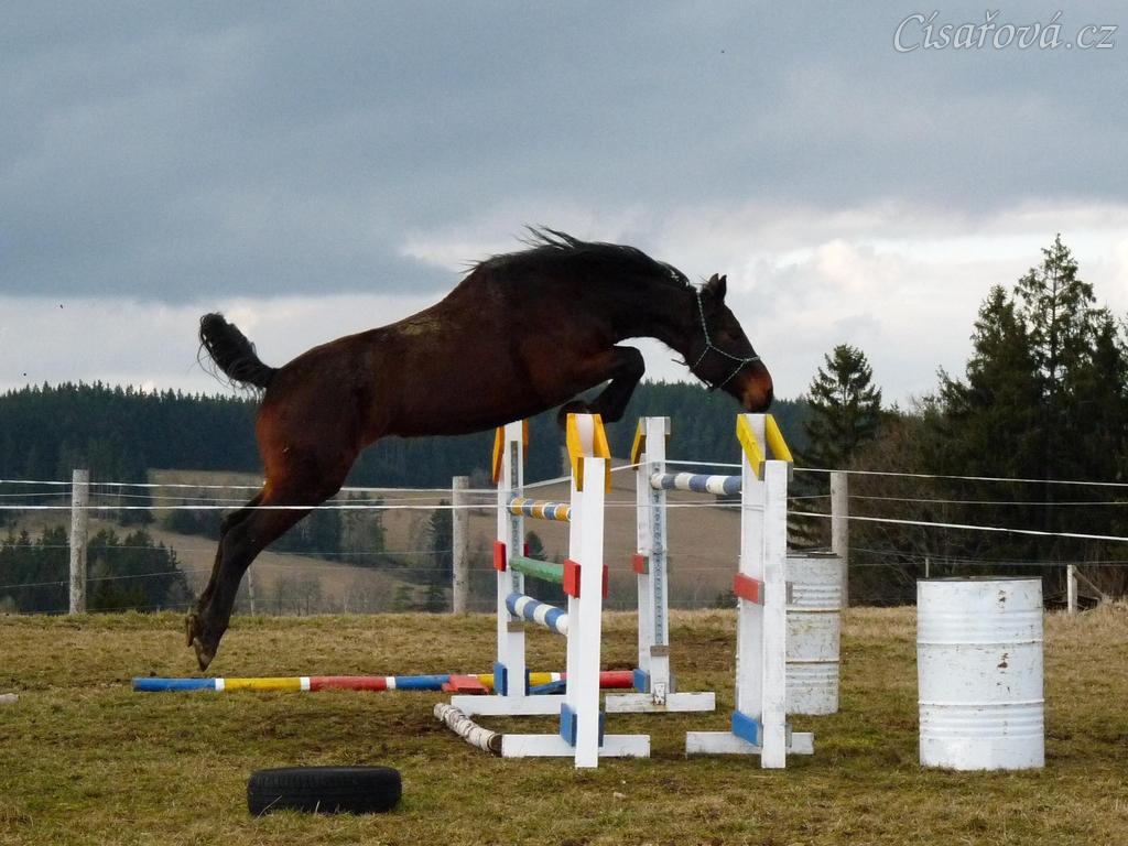 Chesterton při skákání ve volnosti po půl roce výcviku - 145cm