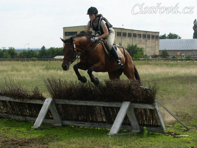 Skok přes proutěnku na opracovišti před crossem