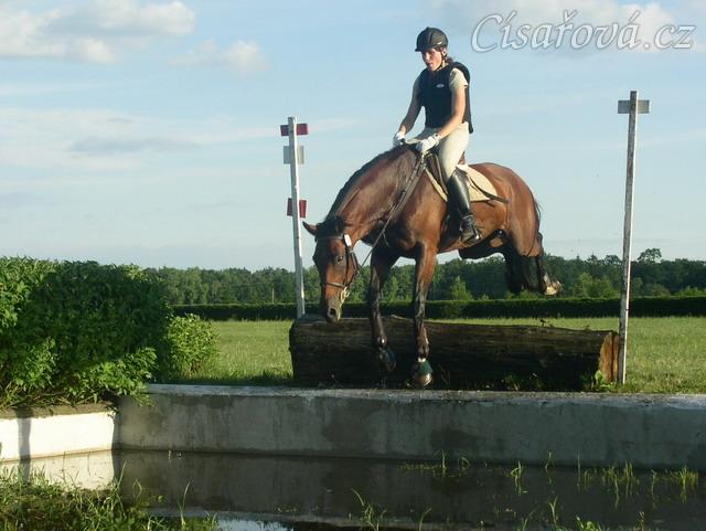 Trénink terénních skoků, seskok do vody přes kládu