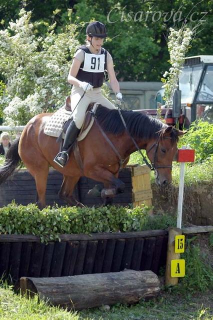 Crossová část, schody: rozfázovaný seskok přes proutěnku.