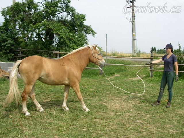 Bela při práci ze země: jojo hra, couvání na vlnění lanem.