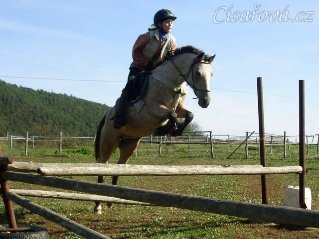 Tereza a Greisy: skoky přes větší překážky také nejsou problém, jen se jezdkyně jednou rukou ještě drží sedla.