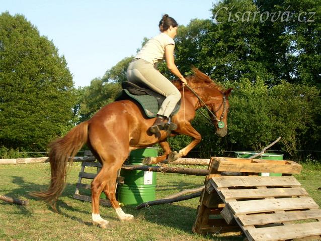 Janek skáče skoky na jízdárně